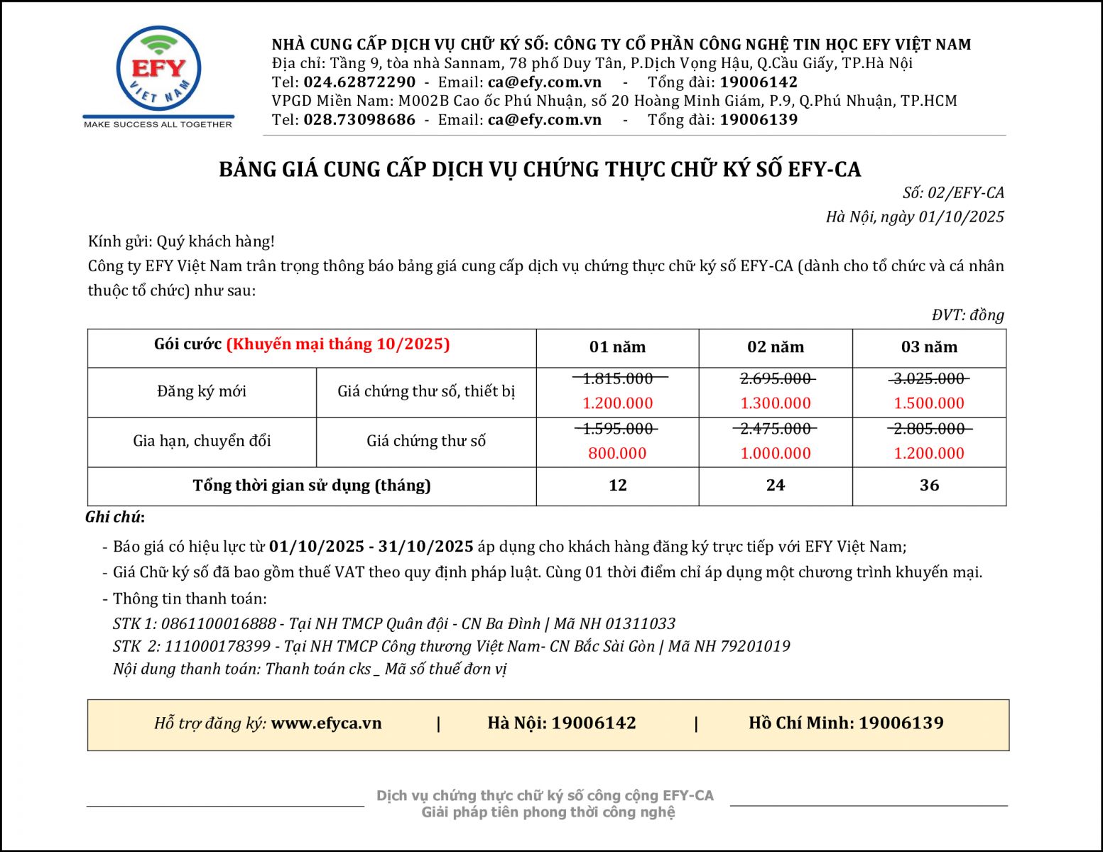 Khuyến mại tháng 10 chữ ký số mừng sinh nhật EFY Việt Nam