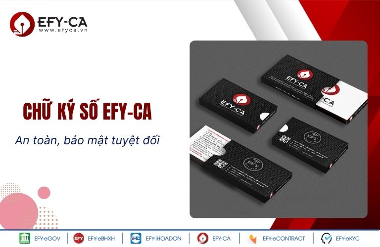 EFY-CA là giải pháp chữ ký số điện tử do Công ty cổ phần công nghệ tin học EFY Việt Nam phát triển, hỗ trợ tổ chức, cá nhân ký kết văn bản, hợp đồng một cách nhanh chóng, bảo mật. Chữ ký số EFY-CA đáp ứng đầy đủ về các tiêu chuẩn CA công cộng theo quy định của Bộ Thông Tin Truyền Thông và Trung tâm Chứng thực chữ ký số quốc gia.