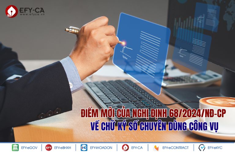 Nghị định 68/2024/NĐ-CP quy định một số điểm mới về chữ ký số chuyên dùng công vụ. Việc sử dụng chữ ký số giúp nâng cao tính bảo mật, đảm bảo hợp pháp, nâng cao hiệu quả quản lý công việc. Bài viết dưới đây của EFY-CA sẽ tổng hợp điểm mới trong Nghị định 68 về chữ ký số chuyên dùng công vụ. Tham khảo ngay nhé.