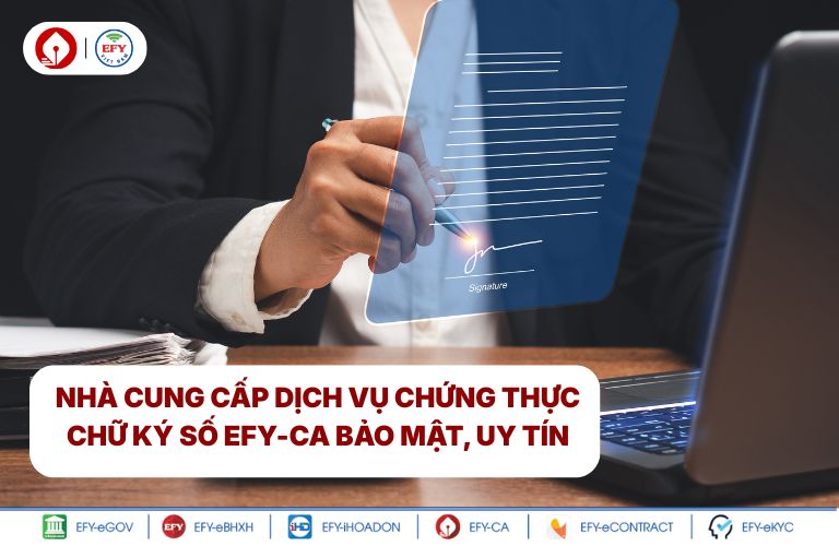 EFY-CA là giải pháp chữ ký số an toàn, hợp pháp và dễ sử dụng, giúp doanh nghiệp ký số nhanh chóng trên hóa đơn điện tử, hợp đồng, báo cáo thuế và nhiều giao dịch điện tử khác. Với hạ tầng bảo mật cao, tuân thủ đầy đủ quy định pháp luật và đội ngũ hỗ trợ tận tâm, EFY-CA không chỉ giúp tối ưu quy trình làm việc mà còn nâng cao uy tín và năng lực vận hành cho doanh nghiệp trong kỷ nguyên số