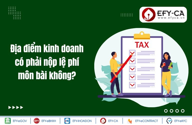 Địa điểm kinh doanh có phải nộp lệ phí môn bài hay không? Quy định về quy trình nộp thuế môn bài cho địa điểm kinh doanh như thế nào? Hãy cùng EFY-CA tìm hiểu chi tiết về nội dung này trong bài viết dưới đây ...