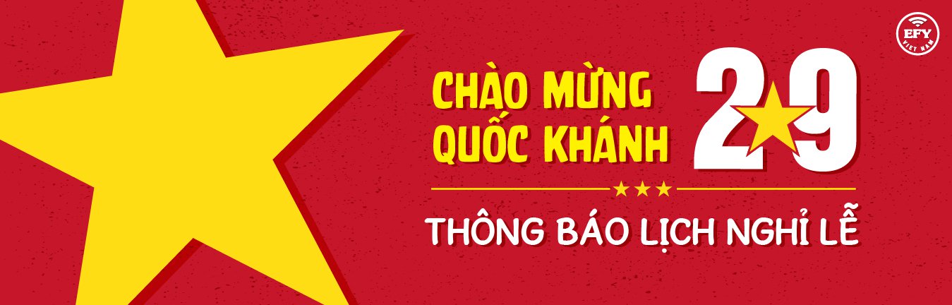 Công ty Cổ phần Công nghệ Tin học EFY Việt Nam xin thông báo đến quý đối tác và quý khách hàng lịch nghỉ lễ Quốc khánh 02/09/2018 như ...