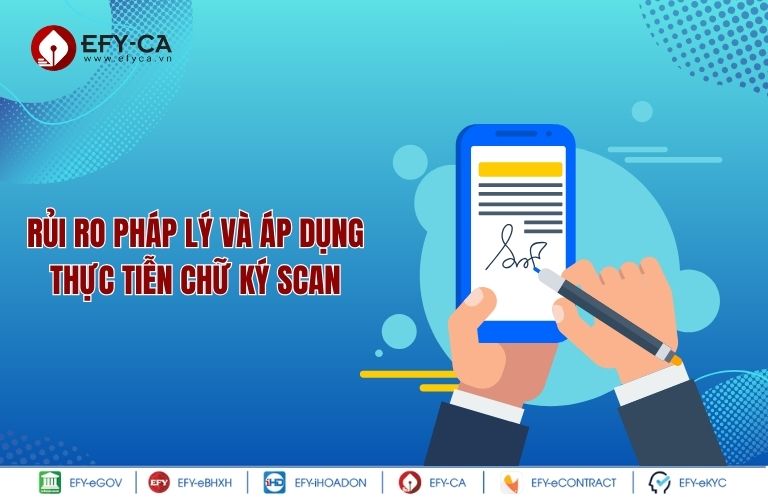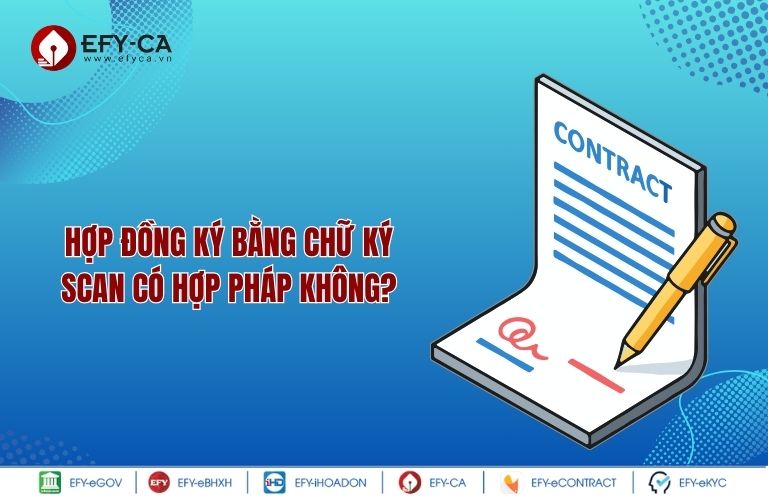 Hợp đồng ký bằng chữ ký scan có hợp pháp không là câu hỏi được rất nhiều người quan tâm. Bài viết dưới đây của EFY-CA sẽ phân tích về giá trị pháp lý của chữ ký scan và những rủi ro về mặt pháp lý khi áp dụng thực tiễn. Tham khảo ngay nhé.