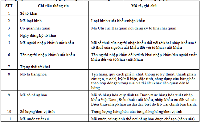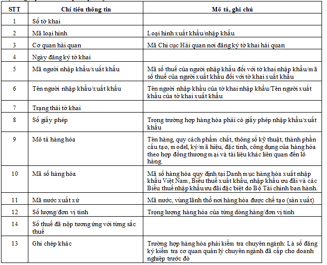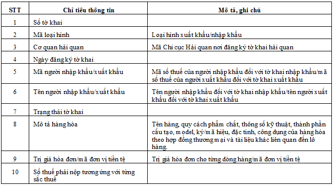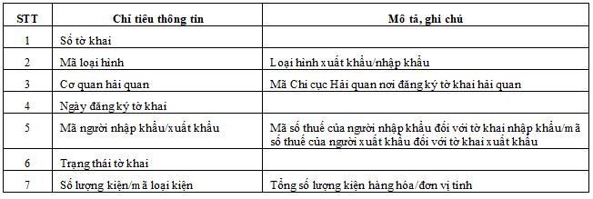 1. Thông tin tờ khai hải quan điện tử; hoặc